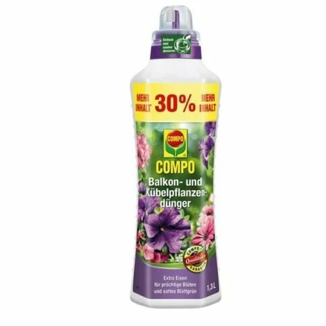 Mineralischer Spezialflüssigdünger für alle Balkon- und Kübelpflanzen, wie z.B. Petunien, Margeriten und Fuchsien.