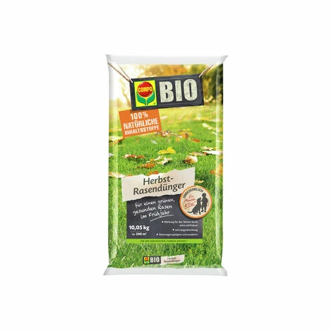 Bio Herbstrasen-Dünger von Compo ist für einen grünen und gesunden Rasen im Frühjahr bestens geeignet.