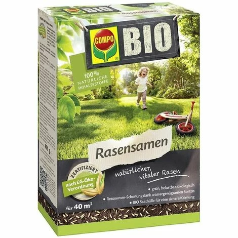 - Mit den COMPO BIO Rasensamen schaffen Sie eine ideale Grundlage für eine sichere und schnelle Keimung. Die BIO Saathülle mit wirkaktivem Keimbeschleuniger sorgt für eine bessere Keimfähigkeit und optimales Wurzelwachstum. Die wassergenügsamen Sorten trotzen extremen Witterungsverhältnissen, so wird Ihr Rasen schnell belastbar und regenerationsstark – natürliche Inhaltsstoffe für einen nachhaltig schönen, gesunden Rasen.