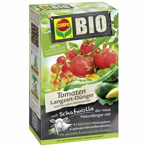 - Der COMPO Bio Tomaten Langzeit-Dünger mit Schafwolle zeichnet sich durch seine sehr gute Sofort- sowie gleichmäßige Langzeitwirkung von bis zu fünf Monaten aus – damit reicht 1 x düngen für eine komplette Saison. Er ist ideal geeignet für alle Arten Tomaten sowie anderes frucht- und knollenbildendes Feingemüse und Gewürzkräuter.