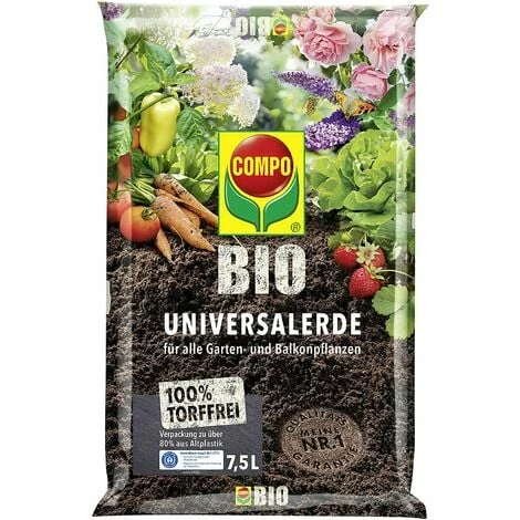 - Lieferumfang: 1 x 7,5 Liter Beutel COMPO BIO Universal-Erde torffrei, pH-Wert: 5,0 – 7,0