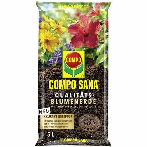 - Die COMPO SANA Qualitäts-Blumenerde kann das ganze Jahr über für alle Zimmer-, Balkon- und Gartenpflanzen sowie Kräuter, Gemüse und Obst verwendet werden.